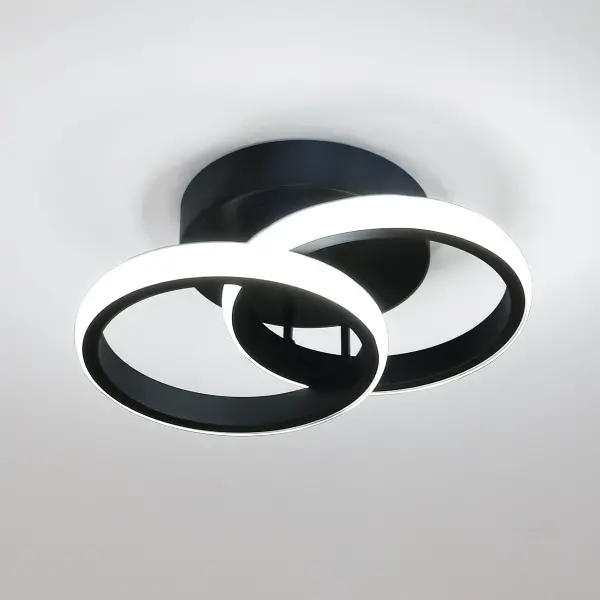 DELIPOP Modern LED Ceiling Light, 22W Black Flush Mount Ceiling Lamp Fixture, 6500K Cold White LED Hallway Light for Living Room Bedroom Entryway Aisle Bathroom Kitchen Round Black 6500K