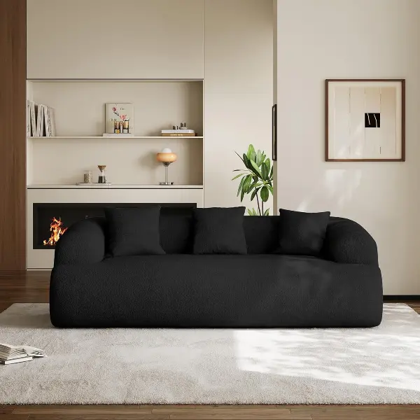 91" Boneless Couch,Cloud Couch,Chenille Curved Sofa with 3 Seater and 3 Pillows, Modern Compression Sofa for Living Room, Bedroom and Apartment, No Assembly Required Black
