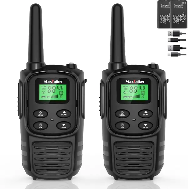 Walkie Talkies Long Range for Adult, MT10 Rechargeable Walkie Talkies FRS Two Way Radio, NOAA, 1200mAh Li-ion Battery USB-C Cable, LED Flashlight, VOX Walkie Talkie for Hiking Camping 2Pack Black