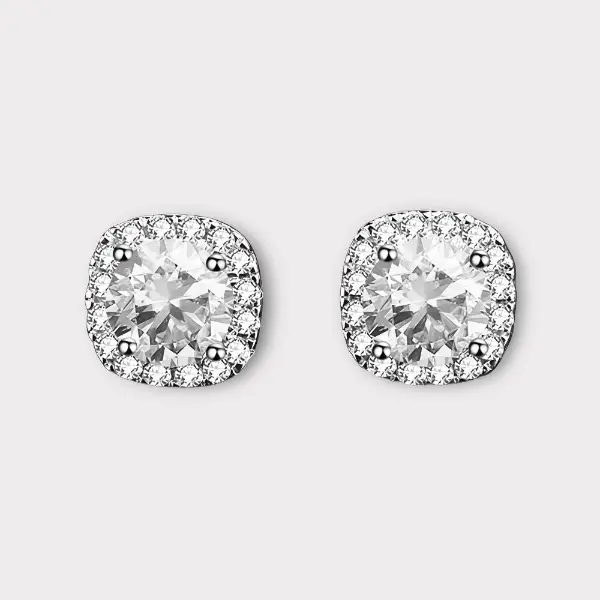 Square Moissanite Halo Earrings
