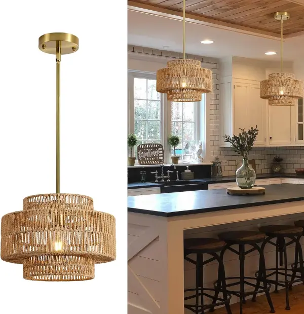 Boho Rattan Chandelier Light Fixture