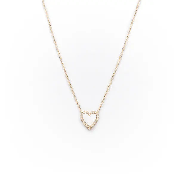 Mother of Pearl + Pavé Diamond Heart Necklace in 14k Yellow Gold